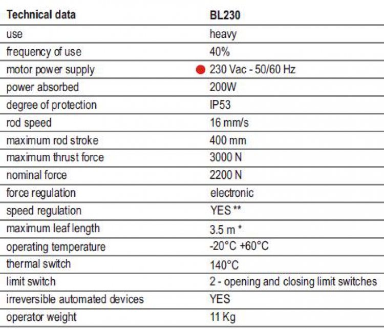 เครื่องเปิด-ปืดประตูบานสวิงอัตโนมัติ รุ่น BL230นำเข้าจากประเทศอิตาลี